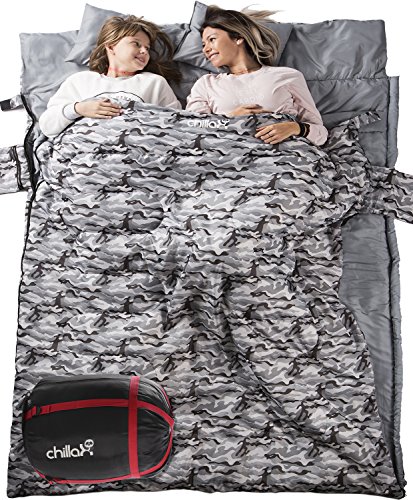 Chillax Double Sleeping Bag for Camping, Backpacking or Hiking – Perfect Sleeping Sack for Couples – Extra Large 3 Season Waterproof Sleeping Bag for 2 Person, Adults, Seniors – Best Unique Gift !