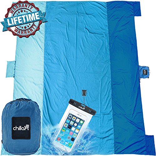 Chillax Sand Free Beach Blanket – Huge 9′ x 10′ for 7 Adults – Best Mat for Picnic, Camping, Hiking and Music Festivals (Blue)