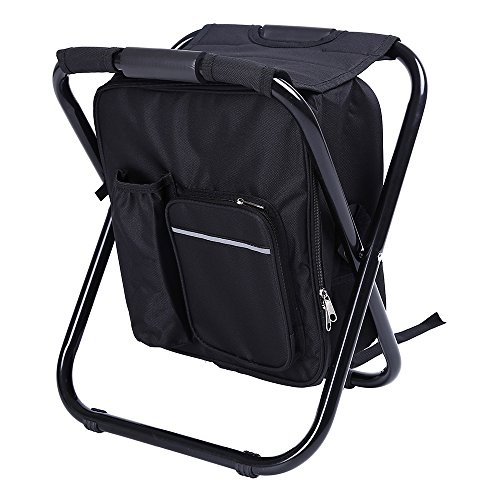 Fishing Backpack Chair,Portable Camping Stool,Foldable Backpack Stool with Double Layer Oxford Fabric Cooler Bag for Fishing,Beach,Camping,House and Outing (Black)