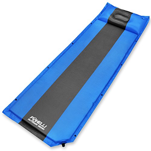 Foxelli Sleeping Pad – Comfortable & Compact Self Inflating Lightweight Moisture-proof Mat, Perfect for Camping, Hiking & Backpacking, Super Durable Foam Padding, Waterproof Air Mattress with Pillow